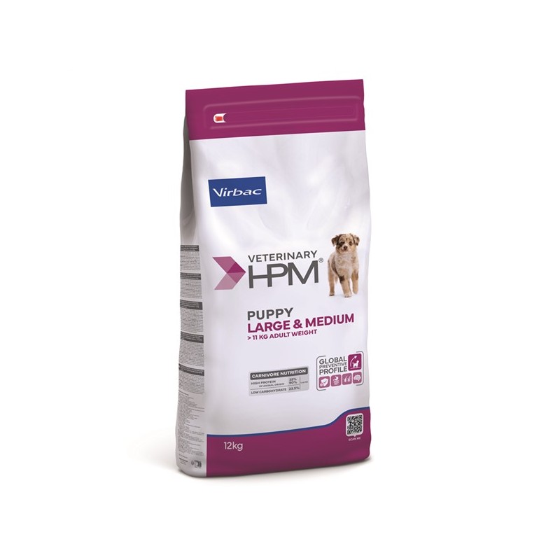 Croquettes Virbac pour chiots (grande race jusqu'à l'âge de 7 mois, moyenne race jusqu'à l'âge de 6 mois). Au format 12kg.