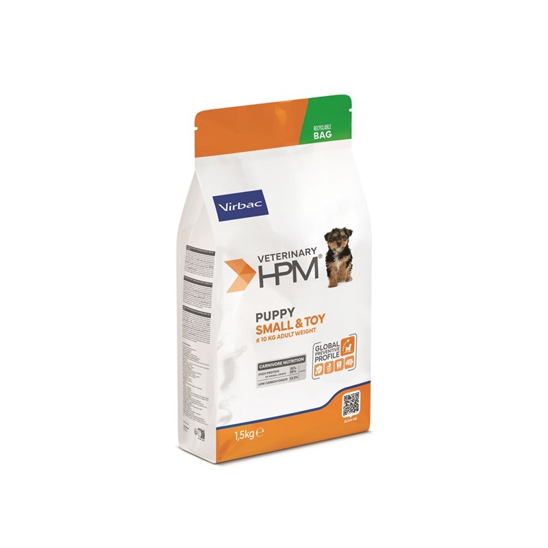 Croquettes Virbac pour chiots (petite race jusqu'à l'âge de 10 mois). Au format 1,5kg.